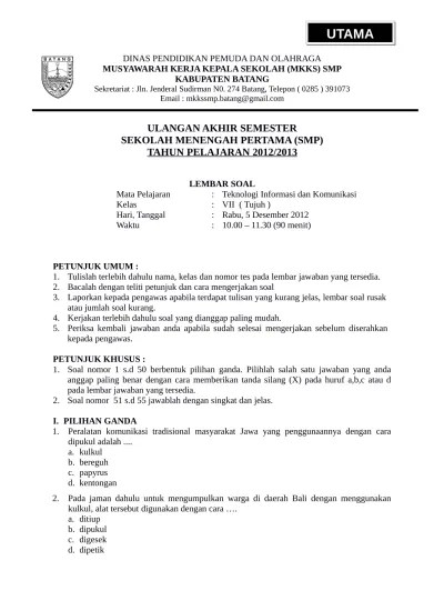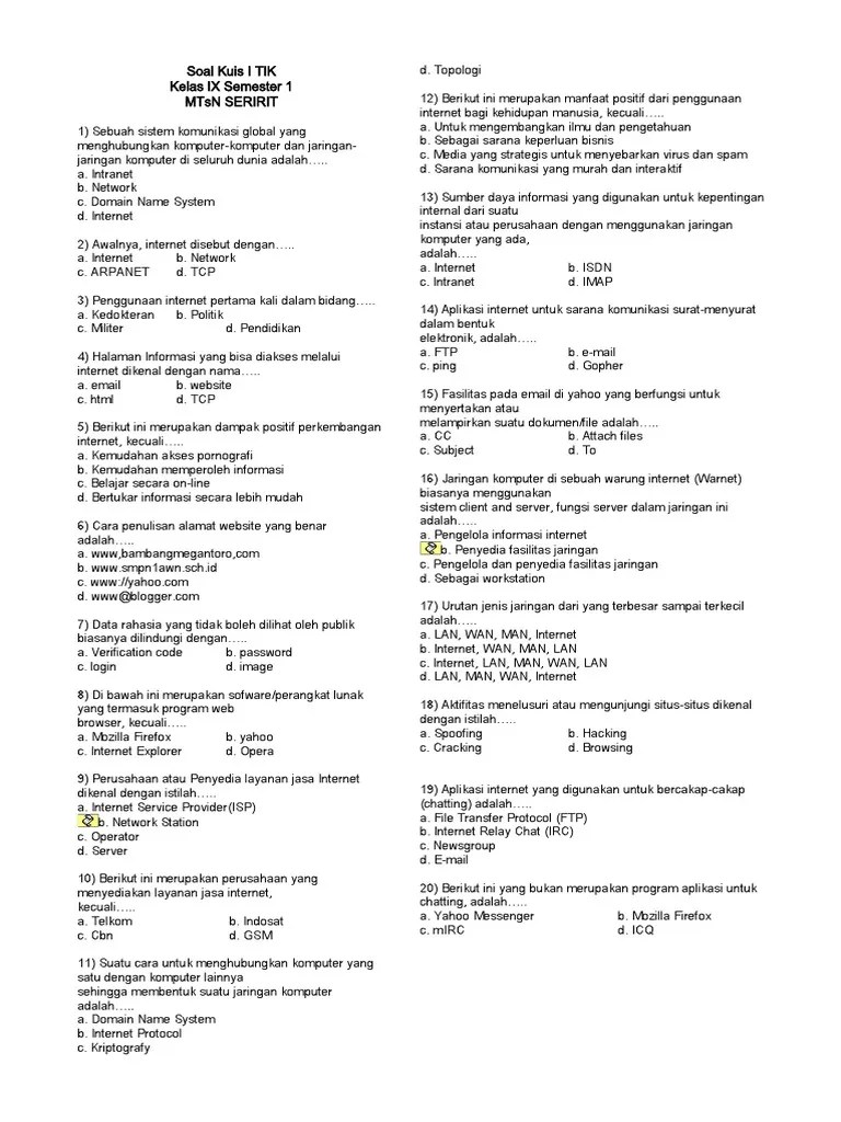 Soal Tik Smp Kelas 7 : Kumpulan Soal Tik Smp Kelas 8 Semester Ganjil Didno76 Com - Download modul materi tik smp mts kelas 7 semester gasal kurikulum 2013 bab 2 anasmakruf com.